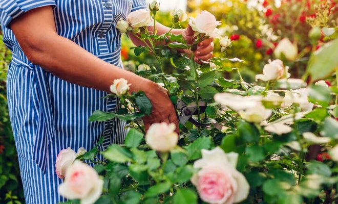 Если вы счастливый обладатель розария, то вам не придется сомневаться в свежести роз, выбранных для букета. Свежесть роз – главная гарантия того, что они долго простоят в вазе. Утром или вечером острым секатором срежьте розы (если есть возможность, то не выбирайте вьющиеся и кустарниковые), при этом с одного куста собирайте не более трех цветов. В вазах розы предпочитают простор, им также не подойдут прозрачные емкости. Желательно, чтобы 2/3 стебля находилось в воде, у «подводной» части не должно быть листьев и шипов.