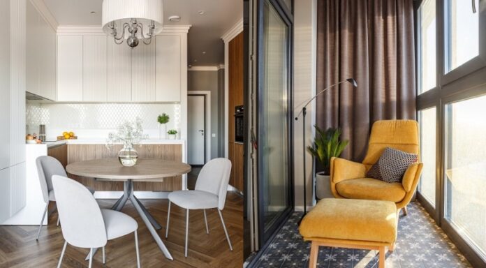 Таким образом, с помощью того, что дизайнер задействовала два балкона и решила выделить дополнительную гардеробную, в квартире получилось много функциональных зон: спальня, гардеробная с кабинетом в спальне, зона отдыха на балконе, кабинет на балконе, гостиная, кухня, гардеробная в прихожей, ванная комната, постирочная в ванной, прихожая. При этом комнаты кажутся просторными и не захламленными.