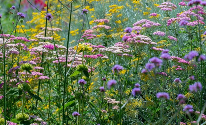 Известный лекарственными свойствами тысячелистник будет не только цвести все лето, но и наполнит сад приятным запахом лугов. А еще этот сорняк прекрасно отпугивает насекомых-вредителей и защищает почву от эрозии в засушливый период.