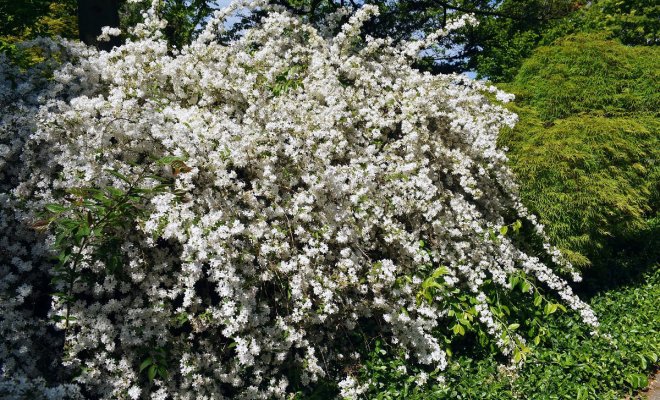 Восточная «родственница» гортензии – дейция – цветет с июня по июль. Если ее не обрезать, то многолетник быстро разрастется, превратившись в роскошный куст до 1,5 м высотой. Обильные нежные цветы дейции украсят любой сад, как, впрочем, и само растение, которое долго не теряет декоративности.