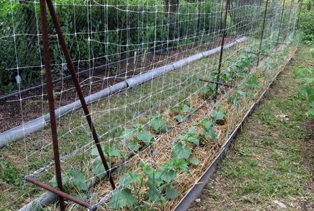 Выращивание огурцов на шпалере позволяет очень экономно использовать имеющееся пространство.