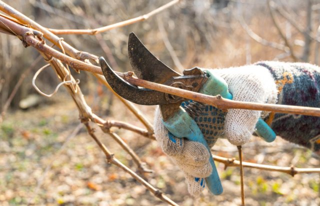 Осмотрите шпалеры в винограднике. Вначале очистите проволоку от остатков лозы, затем, при необходимости, почините шпалеры или даже натяните вместо них новую проволоку. Убедитесь, что кусты надежно укрыты. Если это не так, создайте растениям дополнительную теплоизоляцию, набросав часть выпавшего снега на виноградник.