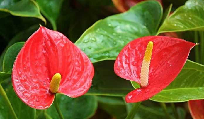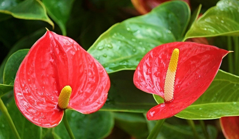 Антуриум комфортно себя чувствует при температуре от 20 до 26 градусов в летний период, а в зимний сезон воздух должен быть не холоднее 15 градусов. Этот цветок любит влажный климат, поэтому его необходимо часто опрыскивать и регулярно поливать. А вот к свету он равнодушен: прямых солнечных лучей антуриум не переносит, ему приятнее рассеянное освещение или полутень. Этот цветок отлично подойдет для плохо освещенных подоконников.