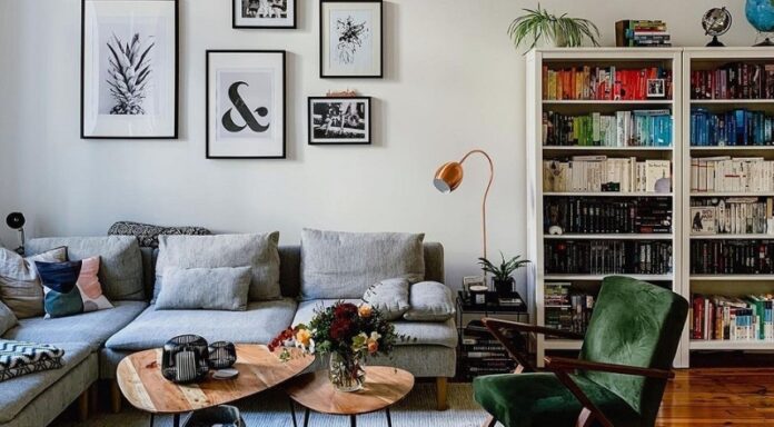 В этом интерьере «подружили» сразу несколько направлений. Мебель и аксессуары создают атмосферу ретростиля, мотивы бохо прослеживаются в ярком активном текстиле и элементах декора: например, в раме одного из постеров. И, наконец, неоклассика представлена колоритной лепниной на потолке. Из такого микса стилей получился яркий и самобытный интерьер, в котором хочется находиться, разглядывая каждую деталь.