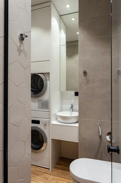 Кажется, зачем нужна целая постирочная, если есть возможность просто поставить стиральную машину в санузле? Но иногда она занимает последние квадратные метры свободной площади или перегораживает проход. В таком случае имеет смысл организовать место для стирки отдельно от ванной комнаты. В типовых квартирах это может быть второй санузел или отдельное помещение в новостройках часто уже предусмотрена гардеробная, где можно оформить постирочную. Также зону для стирки разрешено организовывать на площади коридора. Но для этого нужно провести все необходимые коммуникации на этапе ремонта.