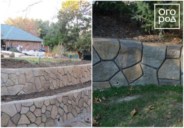 Поперек опалубки проложите водоотводную трубу, а после этого залейте все бетонной смесью. Чтобы стена выглядела декоративно, ее можно облицевать искусственным камнем или посадить рядом вьющиеся растения. Такая крепкая конструкция прослужит вам долго, поскольку упрочена арматурой.
