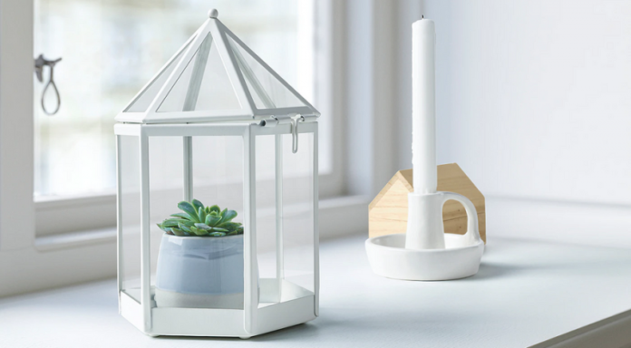 Эта мини-теплица станет отличным украшением в доме, где любят комнатные растения или выращивают зелень для готовки. В декоративной теплице проще поддерживать нужную влажность, да и выглядит она очень стильно. Если же садоводство не для вас, используйте ее как подсвечник или просто красивый аксессуар для подоконника.