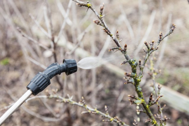 Опытные садоводы знают, что первую обработку сада от патогенов и вредителей нужно успеть провести в самом начале весны. Правда, выбрать подходящее время непросто. Необходимо «уложиться» в период от установления стабильных положительных температур (когда насекомые начали просыпаться, но еще не успели отложить личинки) до того, как набухнут и раскроются почки на деревьях и кустарниках.