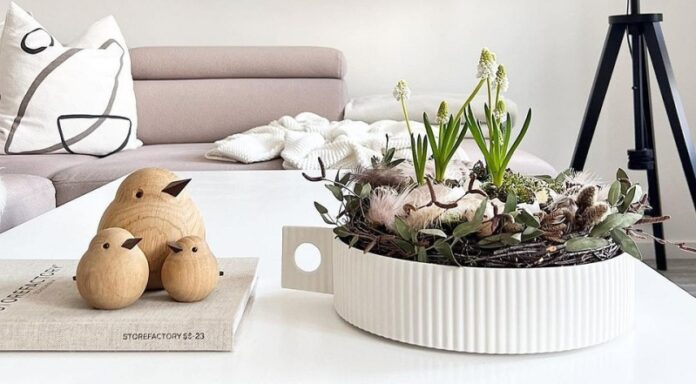 Можно купить несколько предметов в едином стиле, но сыграть на разнице форм или размеров. Это отлично работает с вазами, кашпо, декоративными свечами. Собирайте из них композиции и ставьте на полки, подоконник или журнальный столик. Не бойтесь смешивать разные цвета, пропорции или фактуры так декор будет выглядеть гораздо эффектнее. Подбирайте аксессуары в палитре, которая ассоциируется у вас с весной, или с тематическими узорами.