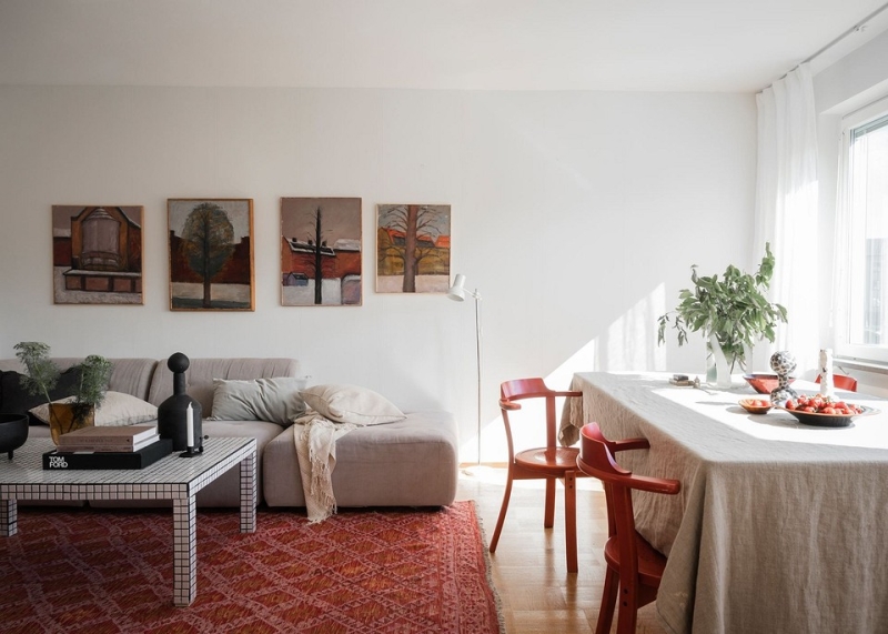 Слишком плотная расстановка мебели, заполненные декором подоконники и стены, забитые до отказа полки и стеллажи все это тоже мешает воспринимать скандинавский интерьер так, как задумано. Сделайте перестановку и уберите часть декора, пусть в квартире будет больше света и воздуха. Если отделка, мебель и цвета были подобраны правильно, то пустые зоны в квартире будут смотреться гармонично, а не как недоработка.
