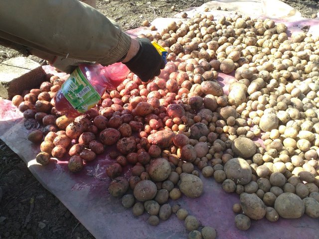 Также для обработки клубней применяют минеральные удобрения. Например, приготовьте такую смесь: по 400 г аммиачной селитры и суперфосфата разведите в 10 л воды. Поместите картофель в раствор на час, а затем просушите и высадите в грунт.