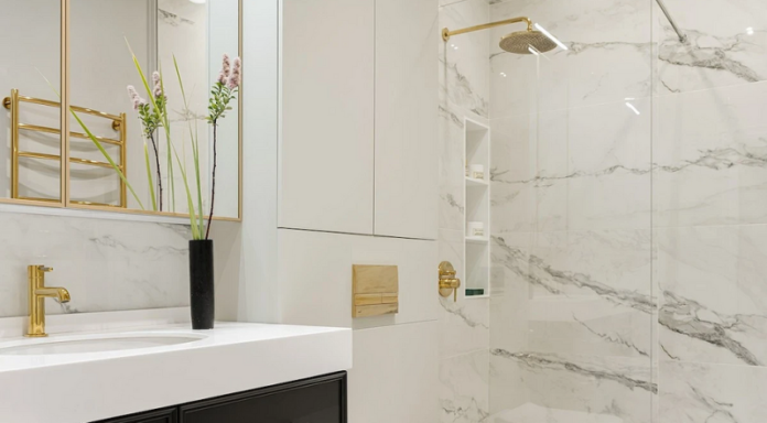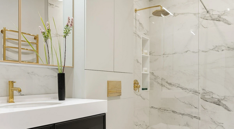 Один из самых популярных способов хранения в душевой кабине ниши. Они могут быть разной величины, одна большая или несколько маленьких. В них оформляют несколько стеклянных, деревянных или пластиковых полок. Часто для удобства внутри делают подсветку. Ниша удобна тем, что не занимает дополнительного места, выглядит минималистично и может вместить все необходимое для ухода за собой. Только вот предусмотреть такой вариант хранения нужно заранее, еще на этапе ремонта.