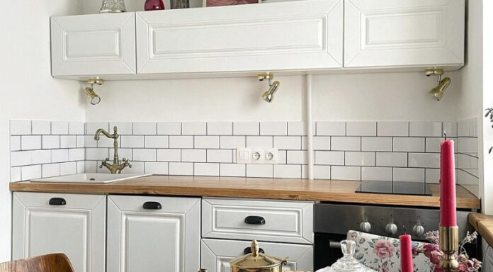 Наконец, трубу можно не прятать, а, наоборот, подчеркнуть и эффектно обыграть например, выкрасив ее в оттенок мебели. Так она будет контрастировать с отделкой и выделяться, но не казаться инородным предметом. Если фасады деревянные, подберите максимально близкий к ним тон коричневого так труба будет выглядеть единым целым с кухонным гарнитуром.