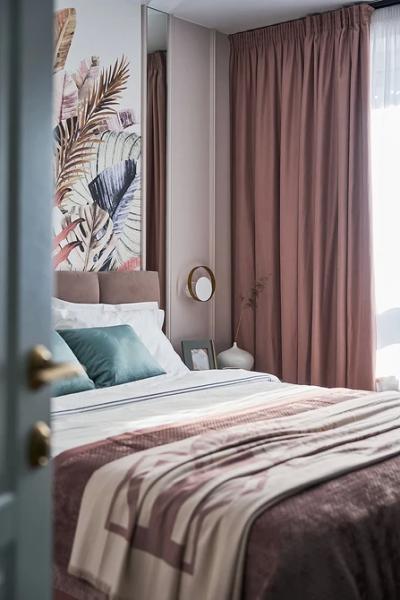 Кровать главный элемент любой спальни. Изголовье с мягкой обивкой придает мебели более эффектный вид и создаст комфортную поддержку для спины: читать и просто отдыхать сидя будет намного удобнее. К тому же мягкая кровать выглядит очень уютно и располагающе, особенно если дополнить мягкую мебель деликатной пастельной палитрой, как сделали в этом проекте.