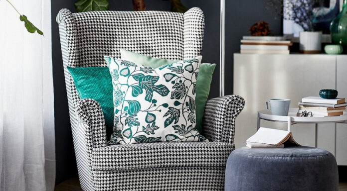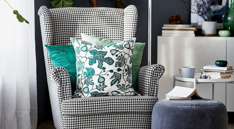 Эта модель кресла впервые была представлена в ИКЕА уже больше полувека назад. И вариант в желтом цвете стал практически «иконой» Инстаграма. Теперь в разделе новинок есть модель в обивке с принтом «гусиная лапка» одновременно модно и универсально. Впишется и в классику, и в современный стиль, станет акцентом в брутальном лофте.