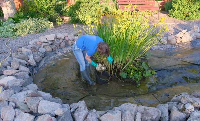 Если в вашем водоеме растут кувшинки или ирисы, их также необходимо прореживать.