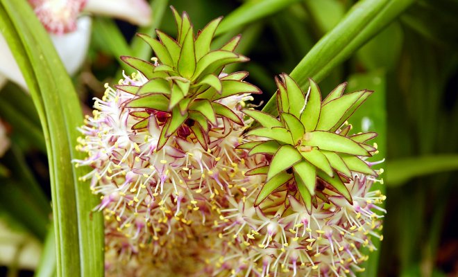 Эукомис, или ананасная лилия, – многолетнее луковичное растение семейства Спаржевые родом из Южной Африки. Второе название культура получила за сходство с ананасом по виду цветоноса и с лилией – по строению корня и особенностям посадки, хотя ни с тем ни с другим у эукомиса родственных связей нет. В природе известно 14 видов эукомиса, а культурными считаются только 4 из них.