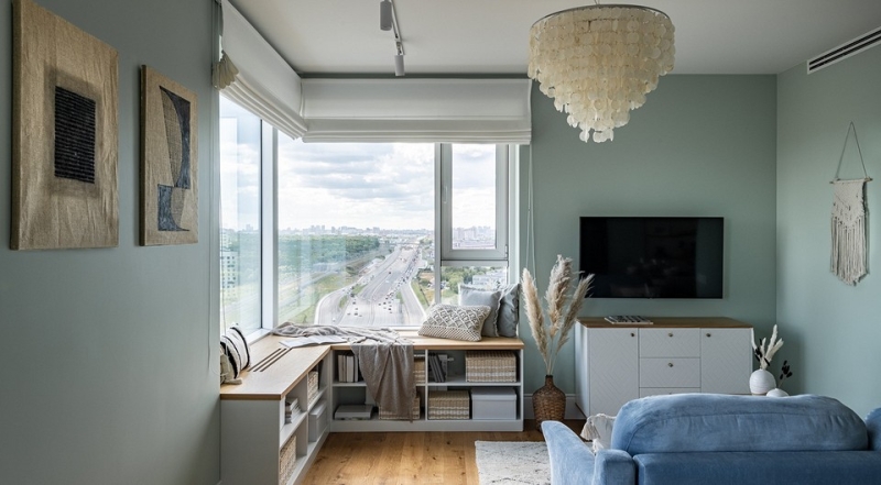Занавески выбирайте легкие, полупрозрачные, в идеале из натуральных тканей, например, хлопка. В приоритете простые формы.