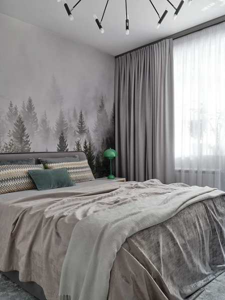 Серый такой же универсальный цвет, как и белый, при этом оттенков у него намного больше: светлые и темные, холодные и теплые. Прекрасно подходит для стен и потолка: в этом случае он станет фоном для других элементов интерьера. В зависимости от оттенка можно создать пространство с самым разным настроением: брутальным, нежным, расслабленным и т.п. Серый одинаково хорошо сочетается с любыми цветами. Среди них и яркие (красный, желтый, синий, зеленый), и нейтральные (молочный, оливковый, бежевый, коричневый).