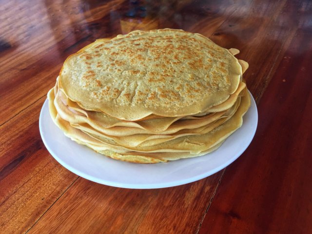 Вам понадобятся: 2 стакана молока, 1,5-2 стакана муки, 2 ст.л. растительного масла, 1 ст.л. сахара, соль и ванилин по вкусу, сало для смазывания сковороды.