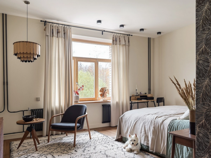 Важно правильно расположить спальни. Например, если у вас грудной ребенок, который спит отдельно, комнату родителей лучше сделать поближе, чтобы при необходимости вставать и быстро подходить к малышу ночью. При этом в одной или сразу двух комнатах стоит сделать шумоизоляцию, чтобы никто не мешал друг другу. Это не обязательно должны быть специализированные материалы используйте плотные обои, текстиль, который немного приглушает звук, поставьте у стены крупную мебель.