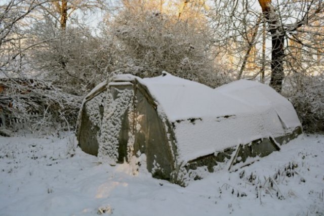 Если снег примерз к листам поликарбоната и простым постукиванием избавиться от него уже не получается, попробуйте прогреть теплицу изнутри. Для этого используйте газовую горелку, сухое горючее или поставьте ведра с горячей золой, если в вашем доме печное отопление. Под воздействием тепла снег начнет подтаивать и потихоньку сползать с крыши и стенок теплицы.