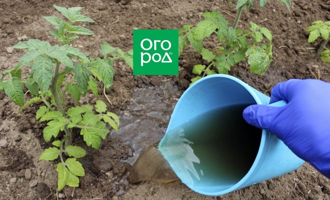 - борофоска (20 г на 10 л воды, 1 л раствора на взрослое растение, по влажной почве);