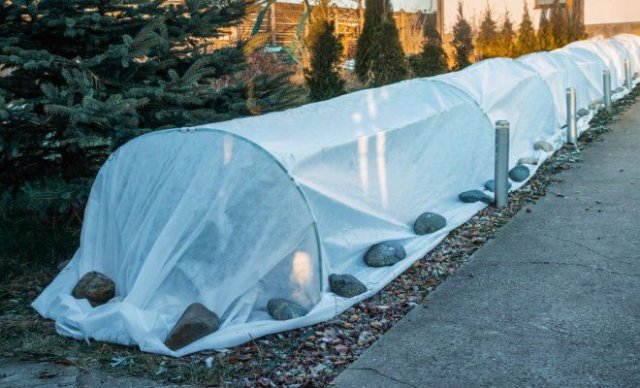 В регионах с холодным климатом дачники используют более плотные варианты спанбонда (60 г/кв.м) либо складывают его в несколько слоев.