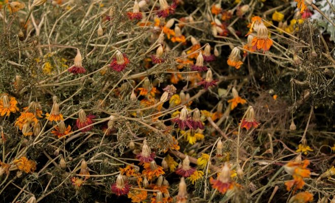 В первую очередь стоит собрать семена с понравившихся растений, если вы, конечно, выращиваете сорта, а не гибриды. А стебли растений заделать в землю на грядках или положить в компост.