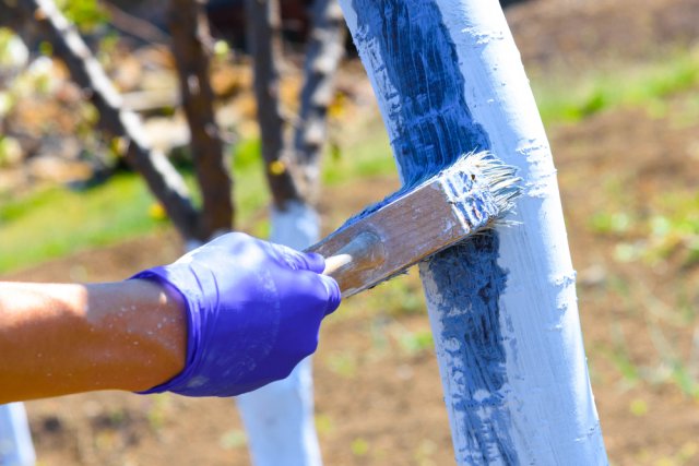 Лучшее время для побелки деревьев – осень, пока температура воздуха не опустилась ниже отметки 5°С. Дополнительную обработку, если требуется обновление побелки, проводят в феврале, но обязательно при положительных температурах воздуха. В этом случае яркое весеннее солнце не причинит вашему саду вреда.