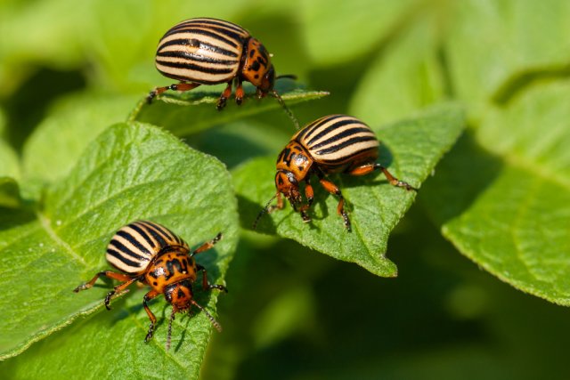 Отродившись из яйца, личинка сразу же начинает питаться. Вначале она поедает мякоть листа с нижней стороны, а затем перебираются на верхнюю и начинают объедать все, оставляя после себя только прожилки. Когда на растении не остается листьев, вредитель быстро перебирается на соседний куст. В старшем возрасте личинка колорадского жука невероятно прожорлива: она питается уже не только днем, но и ночью.