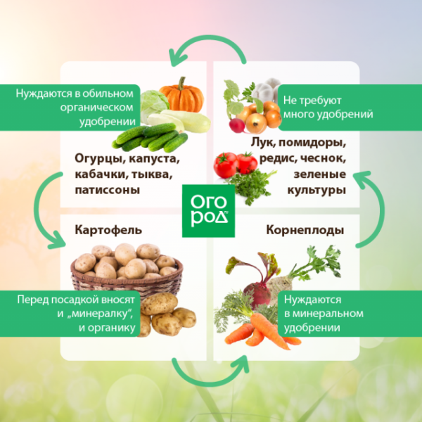 Лук, чеснок, сидераты, фасоль, морковь, огурцы, кабачки, капуста, бахчевые |