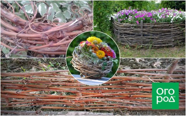 Чаще всего из виноградной лозы дачники делают ограждения. Это может быть как традиционный плетень, который разделяет разные зоны участка, так и декоративное ограждение вокруг клумбы. В обоих случаях принцип работы одинаков.