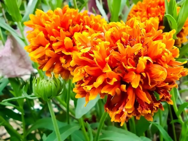 Удивительно смотрятся практически белые бархатцы сортов Ванилла и Эскимо. Среди высокорослых экземпляров особенно выделяются красивым цветением Фантастик оранж и Гильбер Штейн.
