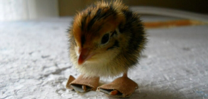 Для лечения цыпленку изготовили «что-то вроде ортопедических шлепанцев», которые просто примотали пластырем к пальцам. Показываем и описываем эту технологию пошагово.