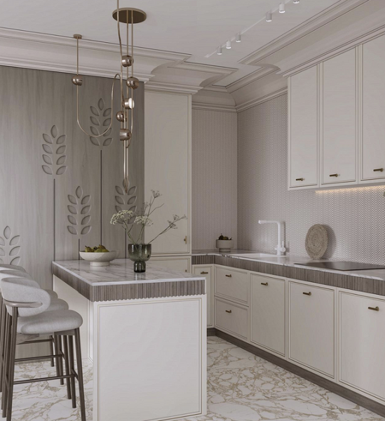 Любые рисунки, надписи, яркие цвета и узоры визуальные якори, которые притягивают внимание. Когда таких фокус-точек в пространстве слишком много, оно кажется перегруженным и излишне пестрым. Если у вас уже есть крупный акцент (например, узорчатые обои на одной стене или эффектный фартук), то все функциональные мелочи подбирайте так, чтобы они сливались с окружающим пространством.