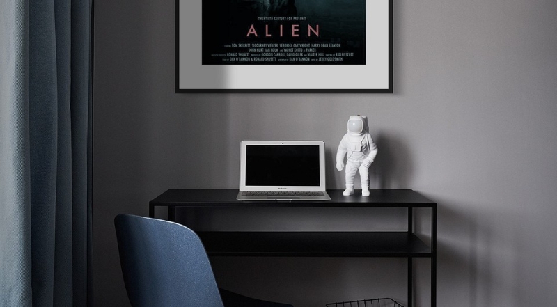 Желание хозяина получить максимально монотонный интерьер в серых тонах реализовано на 100%, однако благодаря расширению палитры от белого до почти черного и привязке к фильму «Чужой» он не сливается с массой серых аналогов, а выглядит элегантно, современно и небанально.