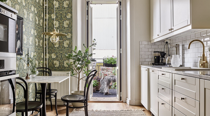 Сканди прекрасно сочетается с винтажем и элементами классики. Если вам нравится такая эстетика, но вы предпочитаете современный интерьер, добавьте в обновленную после ремонта кухню декор и пару фрагментов мебели в классической эстетике. Либо для аутентичности что-то из «бабушкиного» наследства. Если такого декора у вас нет, поищите его на блошиных рынках или досках объявлений.