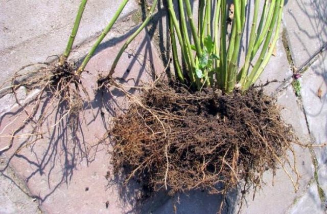 Куст флокса, выбранного для деления, окапывают по окружности и аккуратно извлекают из земли. Затем общее корневище острой лопатой или ножом разделяют на деленки – для осенней посадки лучше, чтобы они были достаточно крупными (они быстрее укореняются и легче переносят зимовку), по 3-5 достаточно толстых стеблей на каждой с полностью сформировавшимися крупными почками возобновления у основания. Побеги обрезают, оставляя 10-15 см длины, и высаживают деленки флоксов в подготовленные лунки вышеописанным способом. Некоторые цветоводы рекомендуют также укорачивать корни, оставляя не более 15 см.