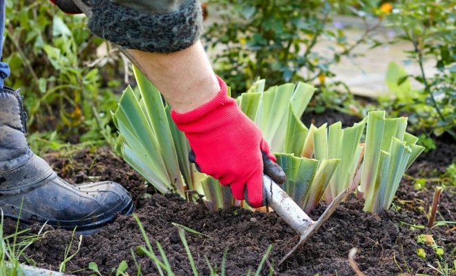 Листья ирисов обрезают остро заточенным секатором на высоту около 10-15 см от грунта. Эта процедура нужна для того, чтобы на растении не развились бактериоз и фузариоз, а весной молодые листья быстрее тронулись в рост.