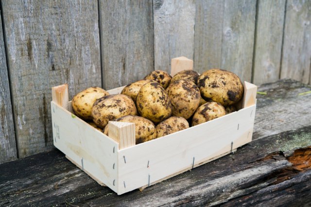 Уложите клубни в 1-2 слоя на стеллажи или в решетчатые деревянные/пластиковые ящики, чтобы все они хорошо освещались. Укладывать картофель желательно верхушечными почками вверх (верхняя часть картофелины там, где глазков больше).