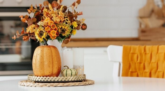 Чтобы создать в квартире осеннее настроение, расставьте корзины или тарелки с сезонными фруктами, соберите букеты из сухоцветов и украсьте ими столы и полки. Ярким элементом в интерьере станет тыква: из нее можно сделать декор своими руками или просто положить несколько штук рядов на столешнице или обеденном столе.