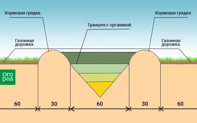 - Регулярно пополнять свежей органикой центральную траншею.
