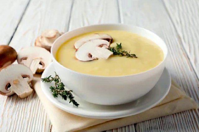 Снимите с огня и подавайте суп горячим, украсив обжаренными ломтиками грибов и, по желанию, солеными сухариками или зеленью.