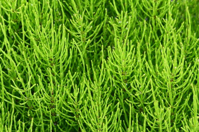 Хвощ предпочитает кислые переувлажненные почвы, поэтому зачастую его появление сигнализирует о необходимости раскисления грунта. Чаще всего на участках растет хвощ полевой, напоминающий зеленые елочки. Растение не увядает до самой осени, обладает мощной корневой системой (до 60 см в длину) и очень быстро разрастается.