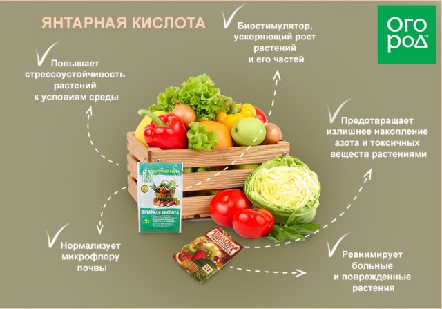 Янтарная кислота не является удобрением в прямом смысле этого слова и не способна заменить вносимые подкормки. Она лишь помогает растениям лучше усвоить их и препятствует излишнему накоплению азотистых веществ.