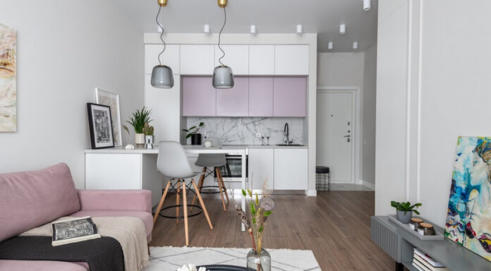 Владелица этой московской квартиры молодая девушка. Она руководит экскурсионным бюро в столице, любит искусство и увлекается историей. Хозяйка обратилась к семейной паре дизайнеров Анастасии и Евгению Российским с просьбой оформить пространство для нее. «Главным запросом было организовать кухню-гостиную таким образом, чтобы там можно было работать, собираться с друзьями, но чтобы пространство оставалось легким и воздушным», рассказывают авторы проекта.