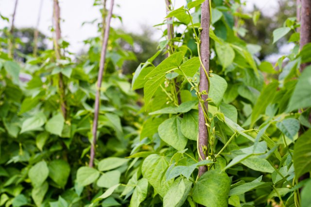 Вы недавно проводили обрезку в саду и, конечно, у вас остались ветки от обновленных деревьев. Выберите те из них, которые не высохли настолько, чтобы сломаться под тяжестью бобовых культур. А дальше все, как в случае с кольями. Кстати, для более быстрого закрепления в земле у веток лучше заострить один из концов.