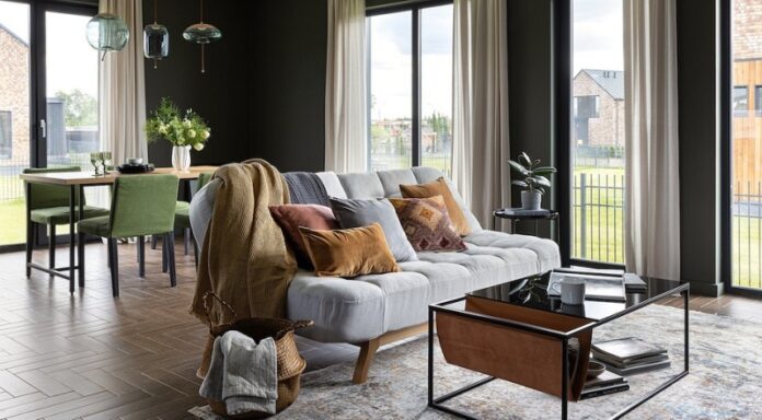 Этот проект создавался для молодой семьи с ребенком. Авторы использовали темные цвета в общих зонах и спальне хозяев, исключение составили только детская и игровая. Получилось очень эффектно!