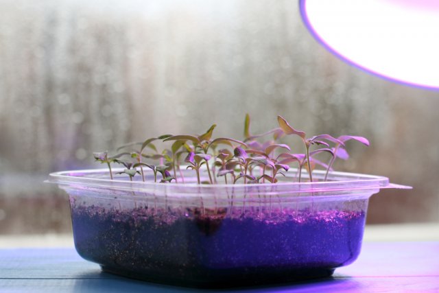 В самом простом случае большинству рассады подойдет обычный мощный, но не сильно греющийся светильник белого света (исключаем, пожалуй, лишь старые лампы накаливания). Гораздо важнее уровень освещенности и ее продолжительность. Подумайте сами – сотни тысяч лет растения на Земле прекрасно довольствуются солнечным светом со «смесью» всех спектральных цветов и отлично себя чувствуют, так что нет острой необходимости мучить домашних именно «фитоспециализированными» раздражающе-фантастическими фиолетовыми сполохами все темное время суток.